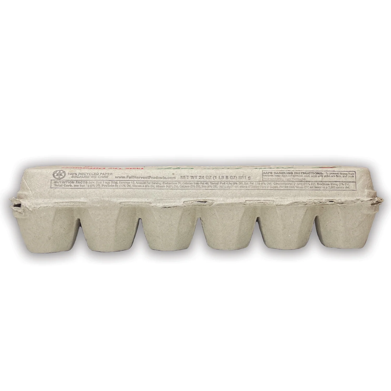 - 12-egg bi-fold stock printed pulp egg carton